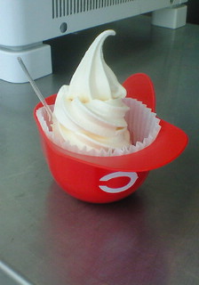 左:バニラソフトクリーム、スーベニアヘルメットw付き